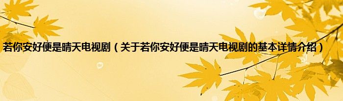 本文关于若你安好便是晴天电视剧的基本详情介绍就讲解完毕,希望对大家有所帮助。