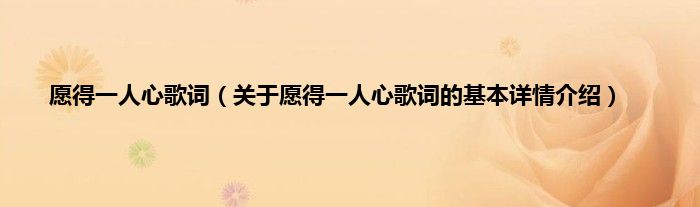 本文关于愿得一人心歌词的基本详情介绍就讲解完毕,希望对大家有所帮助。