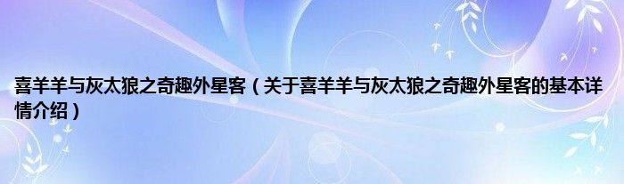 本文关于喜羊羊与灰太狼之奇趣外星客的基本详情介绍就讲解完毕,希望对大家有所帮助。