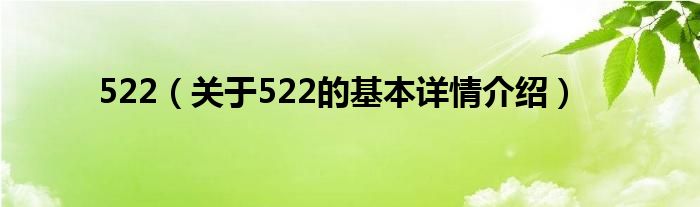 本文关于522的基本详情介绍就讲解完毕,希望对大家有所帮助。