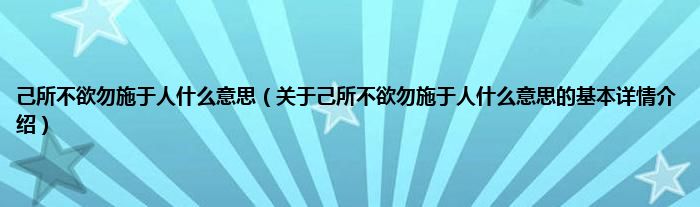 本文关于己所不欲勿施于人什么意思的基本详情介绍就讲解完毕,希望对大家有所帮助。