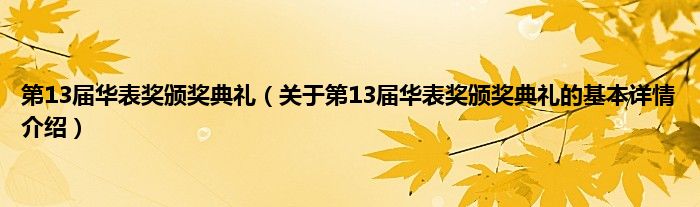 本文关于第13届华表奖颁奖典礼的基本详情介绍就讲解完毕,希望对大家有所帮助。