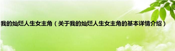 本文关于我的灿烂人生女主角的基本详情介绍就讲解完毕,希望对大家有所帮助。