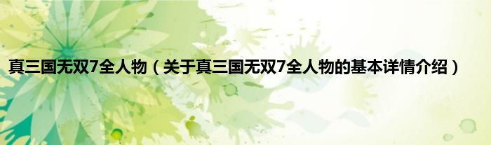 本文关于真三国无双7全人物的基本详情介绍就讲解完毕,希望对大家有所帮助。