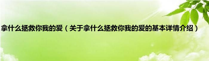 本文关于拿什么拯救你我的爱的基本详情介绍就讲解完毕,希望对大家有所帮助。