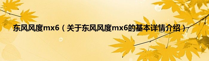 本文关于东风风度mx6的基本详情介绍就讲解完毕,希望对大家有所帮助。