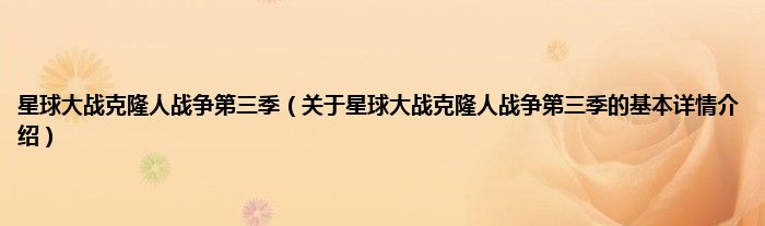 本文关于星球大战克隆人战争第三季的基本详情介绍就讲解完毕,希望对大家有所帮助。