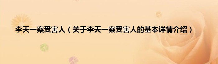 本文关于李天一案受害人的基本详情介绍就讲解完毕,希望对大家有所帮助。