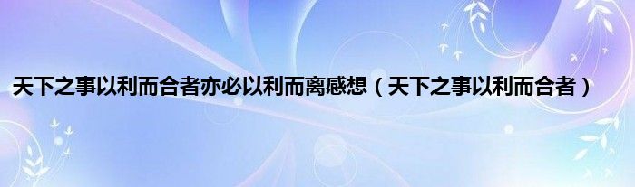 大家好,小问来为大家解答以上问题。天下之事以利而合者亦必以利而离感想,天下之事以利而合者这个很多人还不知道,现在让我们一起来看看吧!