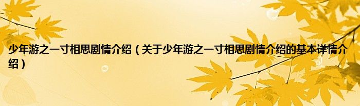 本文关于少年游之一寸相思剧情介绍的基本详情介绍就讲解完毕,希望对大家有所帮助。