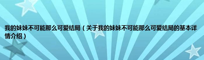 本文关于我的妹妹不可能那么可爱结局的基本详情介绍就讲解完毕,希望对大家有所帮助。