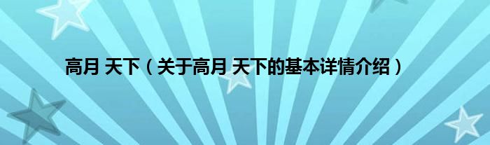 本文关于高月 天下的基本详情介绍就讲解完毕,希望对大家有所帮助。