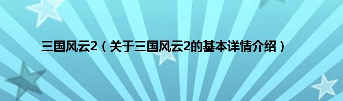 本文关于三国风云2的基本详情介绍就讲解完毕,希望对大家有所帮助。