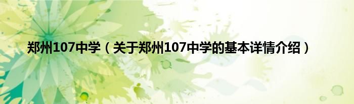 本文关于郑州107中学的基本详情介绍就讲解完毕,希望对大家有所帮助。