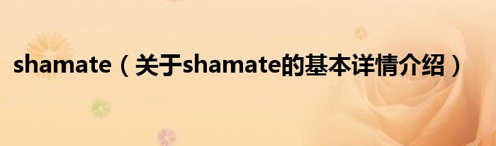 本文关于shamate的基本详情介绍就讲解完毕,希望对大家有所帮助。
