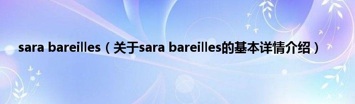 本文关于sara bareilles的基本详情介绍就讲解完毕,希望对大家有所帮助。