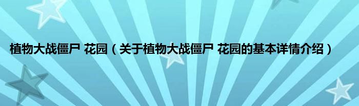 本文关于植物大战僵尸 花园的基本详情介绍就讲解完毕,希望对大家有所帮助。