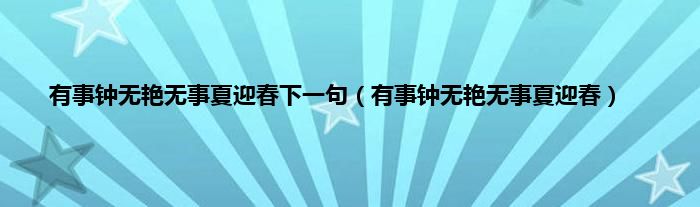 以上就是【有事钟无艳无事夏迎春下一句,有事钟无艳无事夏迎春】相关内容。