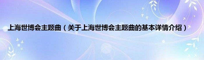 上海世博会主题曲(关于上海世博会主题曲的基本详情介绍)