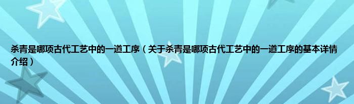 大家好我是小蝌蚪,杀青是哪项古代工艺中的一道工序,关于杀青是哪项古代工艺中的一道工序的基本详情介绍很多人还不知道,那么现在让我们一起来看看吧!