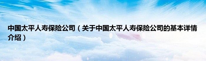 本文关于中国太平人寿保险公司的基本详情介绍就讲解完毕,希望对大家有所帮助。