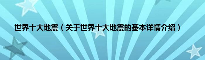 本文关于世界十大地震的基本详情介绍就讲解完毕,希望对大家有所帮助。