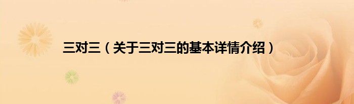 本文关于三对三的基本详情介绍就讲解完毕,希望对大家有所帮助。