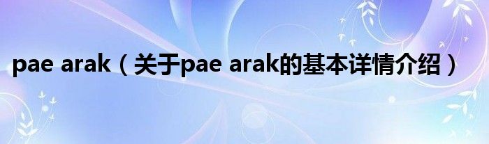 本文关于pae arak的基本详情介绍就讲解完毕,希望对大家有所帮助。