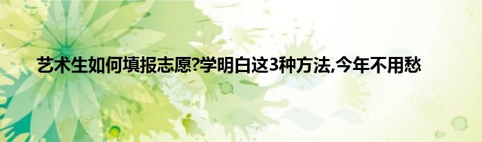 大家好,小问来为大家解答以上问题。艺术生如何填报志愿?学明白这3种方法,今年不用愁这个很多人还不知道,现在让我们一起来看看吧!