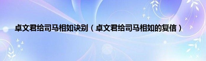 以上就是【卓文君给司马相如诀别,卓文君给司马相如的复信】相关内容。