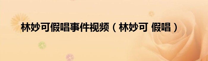 以上就是【林妙可假唱事件视频,林妙可 假唱】相关内容。