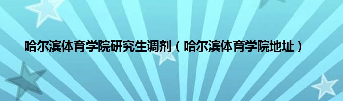 大家好,小问来为大家解答以上问题。哈尔滨体育学院研究生调剂,哈尔滨体育学院地址这个很多人还不知道,现在让我们一起来看看吧!