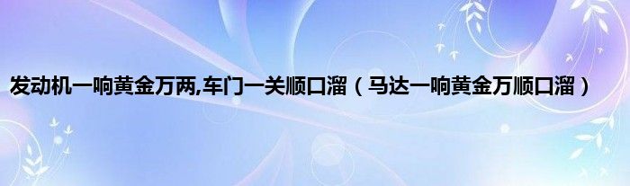 大家好,小问来为大家解答以上问题。发动机一响黄金万两,车门一关顺口溜,马达一响黄金万顺口溜这个很多人还不知道,现在让我们一起来看看吧!
