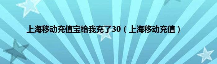 以上就是【上海移动充值宝给我充了30,上海移动充值】相关内容。