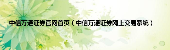 中信万通证券官网首页(中信万通证券网上交易系统)