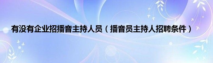 大家好,小问来为大家解答以上问题。有没有企业招播音主持人员,播音员主持人招聘条件这个很多人还不知道,现在让我们一起来看看吧!