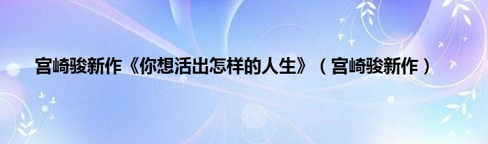以上就是【宫崎骏新作《你想活出怎样的人生》,宫崎骏新作】相关内容。
