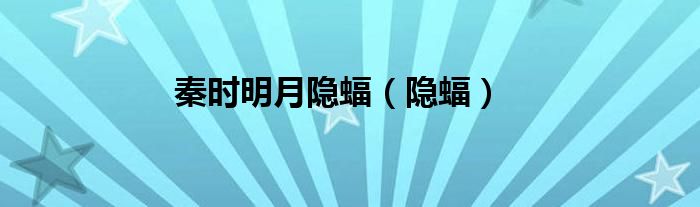 大家好,小问来为大家解答以上问题。秦时明月隐蝠,隐蝠这个很多人还不知道,现在让我们一起来看看吧!