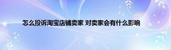 怎么投诉淘宝店铺卖家对卖家会有什么影响