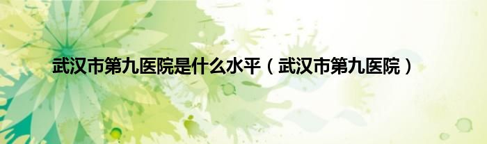 以上就是【武汉市第九医院是什么水平,武汉市第九医院】相关内容。
