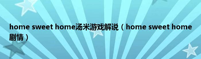 大家好,小问来为大家解答以上问题。home sweet home汤米游戏解说,home sweet home剧情这个很多人还不知道,现在让我们一起来看看吧!