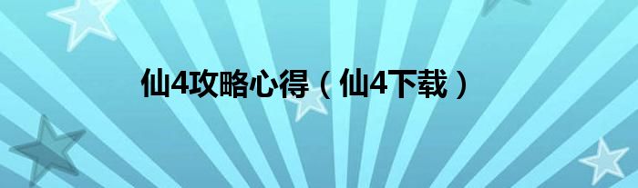 大家好,小问来为大家解答以上问题。仙4攻略心得,仙4下载这个很多人还不知道,现在让我们一起来看看吧!