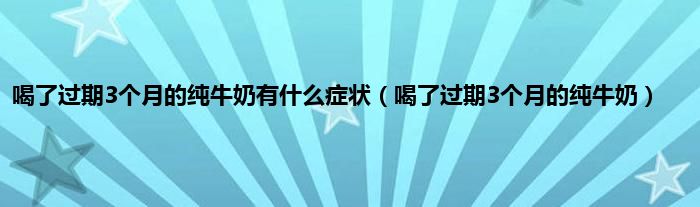 大家好,小问来为大家解答以上问题。喝了过期3个月的纯牛奶有什么症状,喝了过期3个月的纯牛奶这个很多人还不知道,现在让我们一起来看看吧!