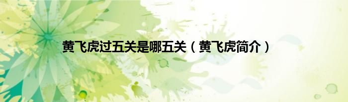 以上就是【黄飞虎过五关是哪五关,黄飞虎简介】相关内容。