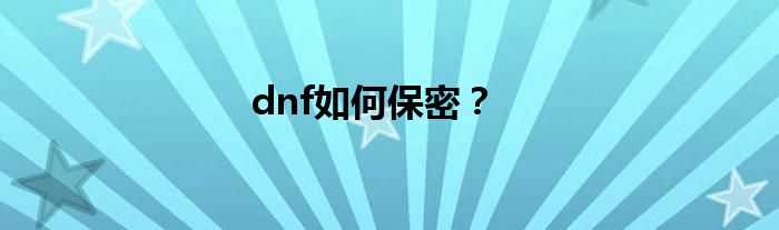 大家好,小问来为大家解答以上问题。dnf如何保密?这个很多人还不知道,现在让我们一起来看看吧!
