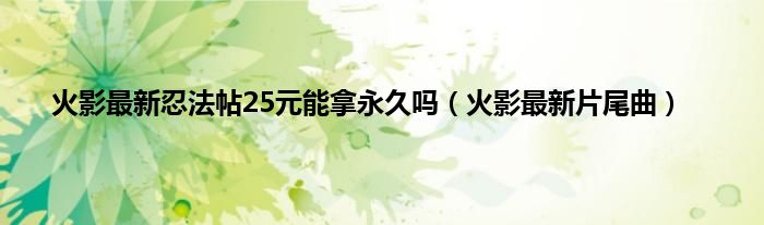 大家好,小问来为大家解答以上问题。火影最新忍法帖25元能拿永久吗,火影最新片尾曲这个很多人还不知道,现在让我们一起来看看吧!