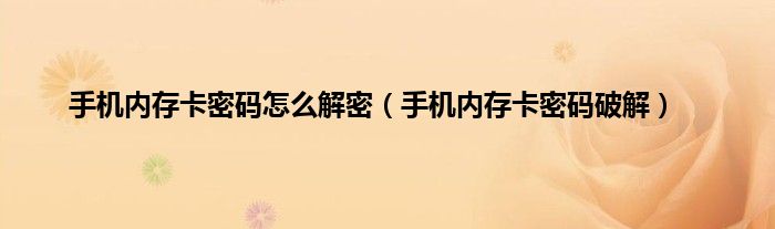 以上就是【手机内存卡密码怎么解密,手机内存卡密码破解】相关内容。