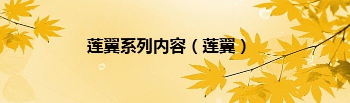 大家好,小问来为大家解答以上问题。莲翼系列内容,莲翼这个很多人还不知道,现在让我们一起来看看吧!