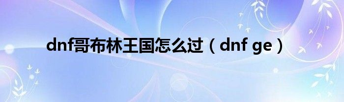以上就是【dnf哥布林王国怎么过,dnf ge】相关内容。