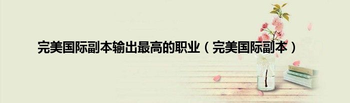 以上就是【完美国际副本输出最高的职业,完美国际副本】相关内容。